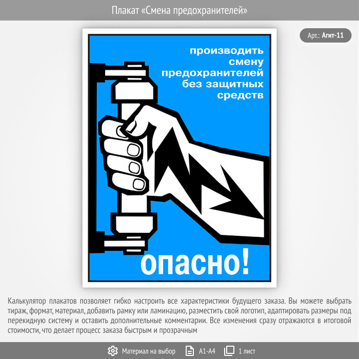 Плакат «Смена предохранителей» (Агит-11, 1 лист) в Новом Уренгое купить