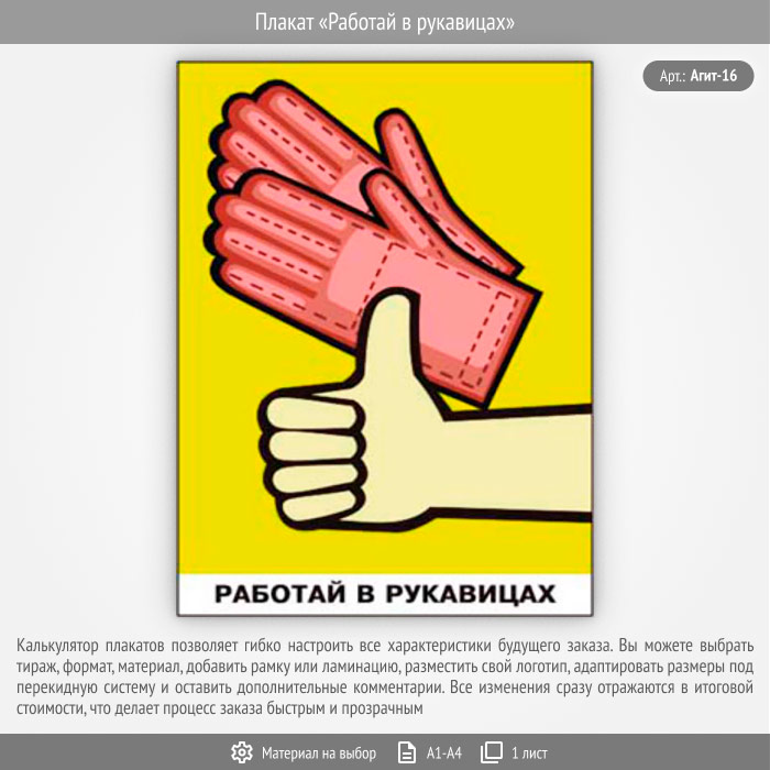 Плакат «Работай в рукавицах» (Агит-16, 1 лист) в Новом Уренгое купить