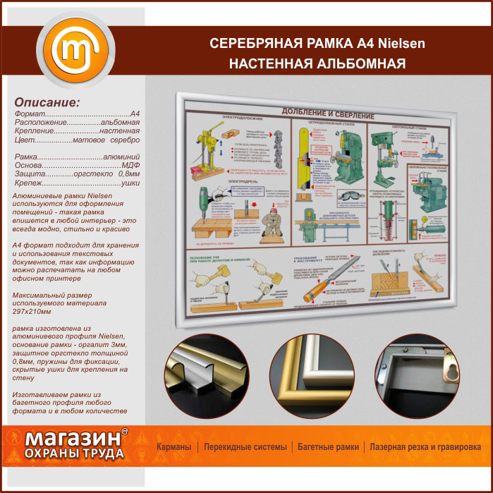 Багетная настенная рамка «Nielsen» А4 формата, альбомная, матовое серебро в Новом Уренгое купить