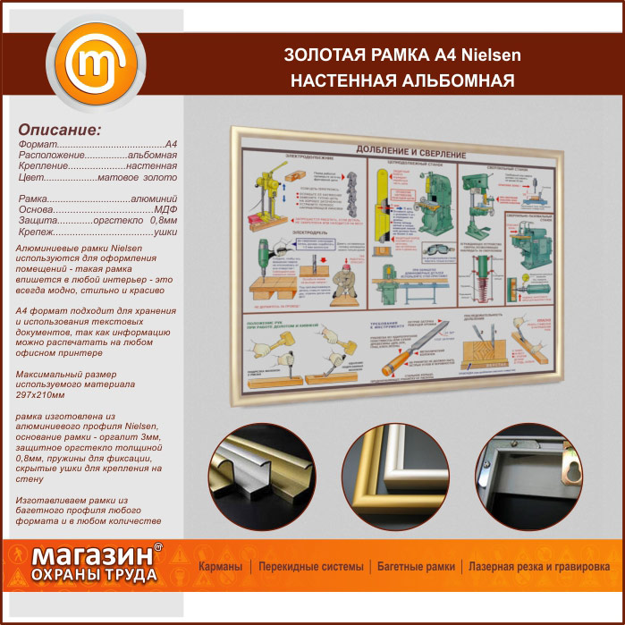 Багетная настенная рамка «Nielsen» А4 формата, альбомная, матовое золото в Новом Уренгое купить