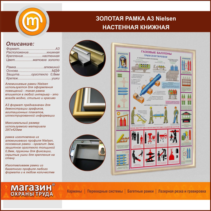 Багетная настенная рамка «Nielsen» А3 формата, книжная, матовое золото в Новом Уренгое купить