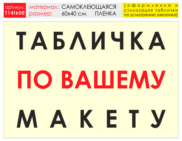Баннер «Табличка по Вашему макету», T14 (самокл. плёнка, 60х40 см)
