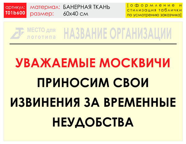 Баннер «Извинения», T01 (баннерная ткань, 60х40 см) в Новом Уренгое купить