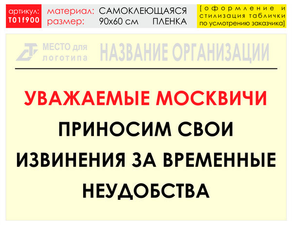 Баннер «Извинения», T01 (самоклеящаяся плёнка, 90х60 см) в Новом Уренгое купить