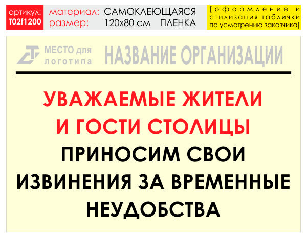 Баннер «Извинения», T02 (самоклеящаяся плёнка, 120х90 см) в Новом Уренгое купить