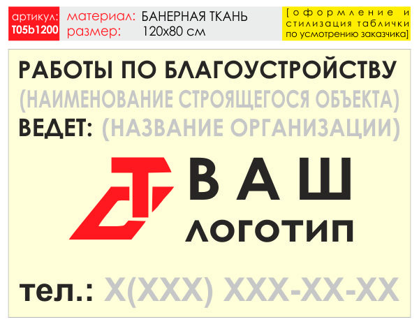 Баннер «Работы по благоустройству», T05 (баннерная ткань, 120х90 см) в Новом Уренгое купить