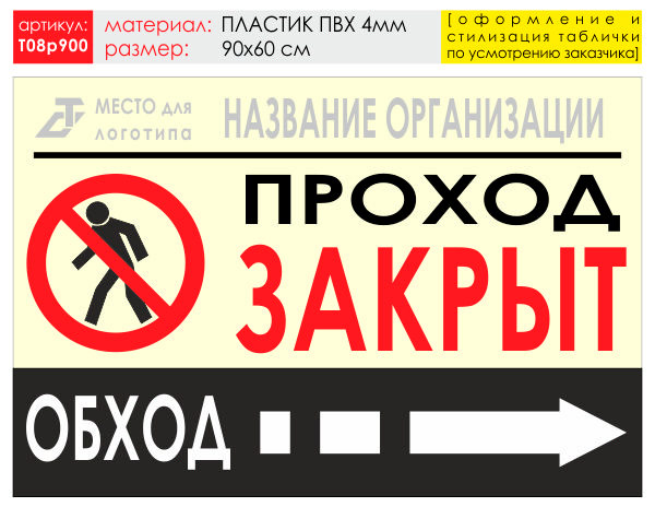 Баннер «Обход справа», T08 (пластик 4 мм, 90х60 см) в Новом Уренгое купить