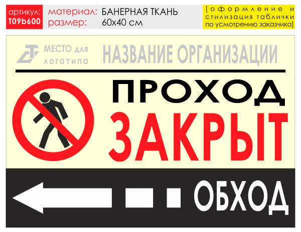 Баннер «Обход слева», T09 (баннерная ткань, 60х40 см) в Новом Уренгое купить