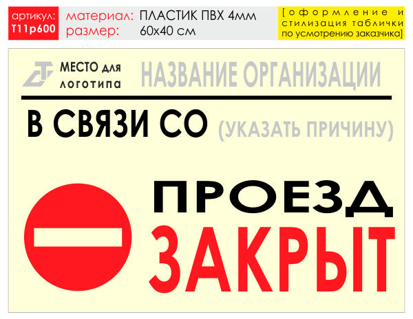 Баннер «Проезд закрыт», T11 (пластик 4 мм, 60х40 см) в Новом Уренгое купить
