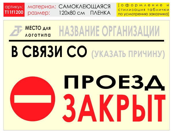 Баннер «Проезд закрыт», T11 (самоклеящаяся плёнка, 120х90 см) в Новом Уренгое купить