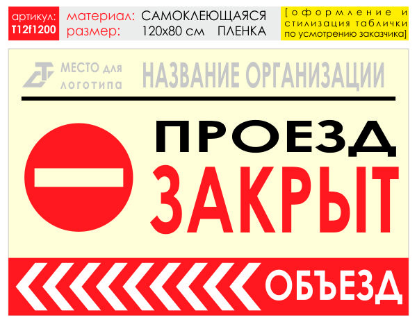 Баннер «Объезд слева», T12 (самоклеящаяся плёнка, 120х90 см) в Новом Уренгое купить