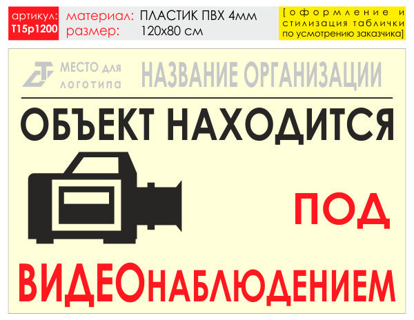 Баннер «Видеонаблюдение», T15 (пластик 4 мм, 120х90 см) в Новом Уренгое купить