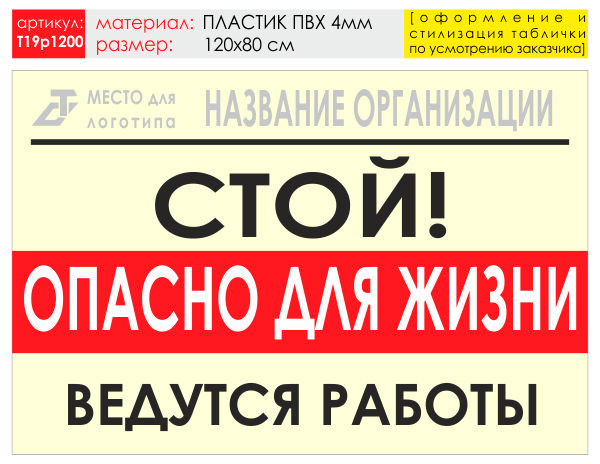Баннер «Опасно для жизни», T19 (пластик 4 мм, 120х90 см) в Новом Уренгое купить
