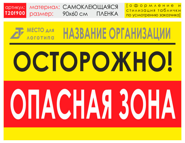 Баннер «Опасная зона», T20 (самоклеящаяся плёнка, 90х60 см) в Новом Уренгое купить