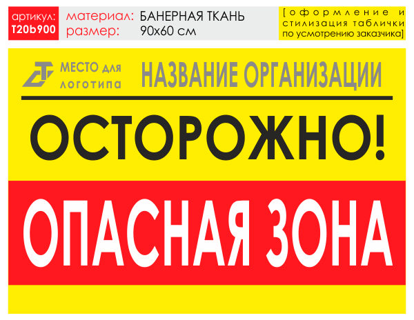 Баннер «Опасная зона», T20 (баннерная ткань, 90х60 см) в Новом Уренгое купить