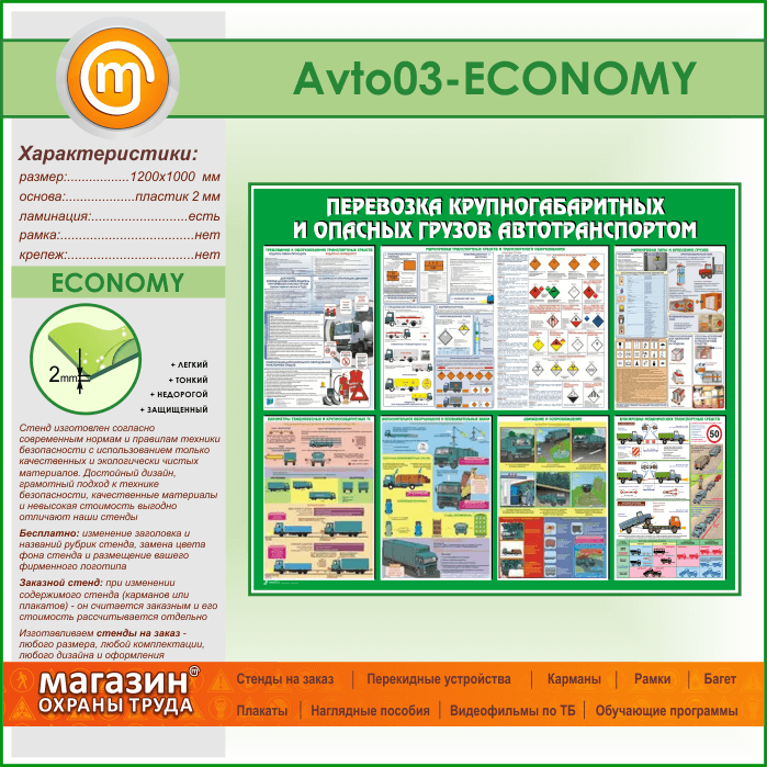 Стенд «Перевозка крупногабаритных и опасных грузов автотранспортом» (AV-03-ECONOMY) в Новом Уренгое купить