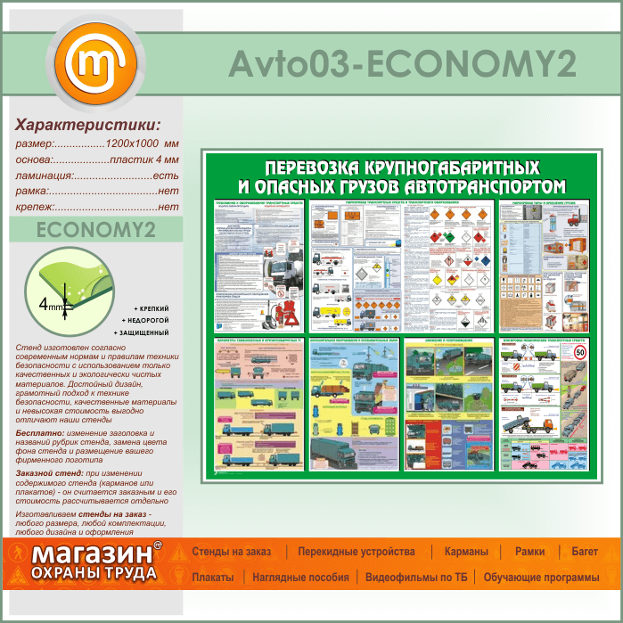 Стенд «Перевозка крупногабаритных и опасных грузов автотранспортом» (AV-03-ECONOMY2) в Новом Уренгое купить