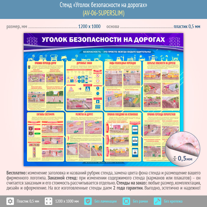 Стенд «Уголок безопасности на дорогах» (AV-06-SUPERSLIM) в Новом Уренгое купить