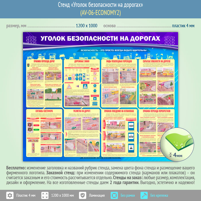 Стенд «Уголок безопасности на дорогах» (AV-06-ECONOMY2) в Новом Уренгое купить