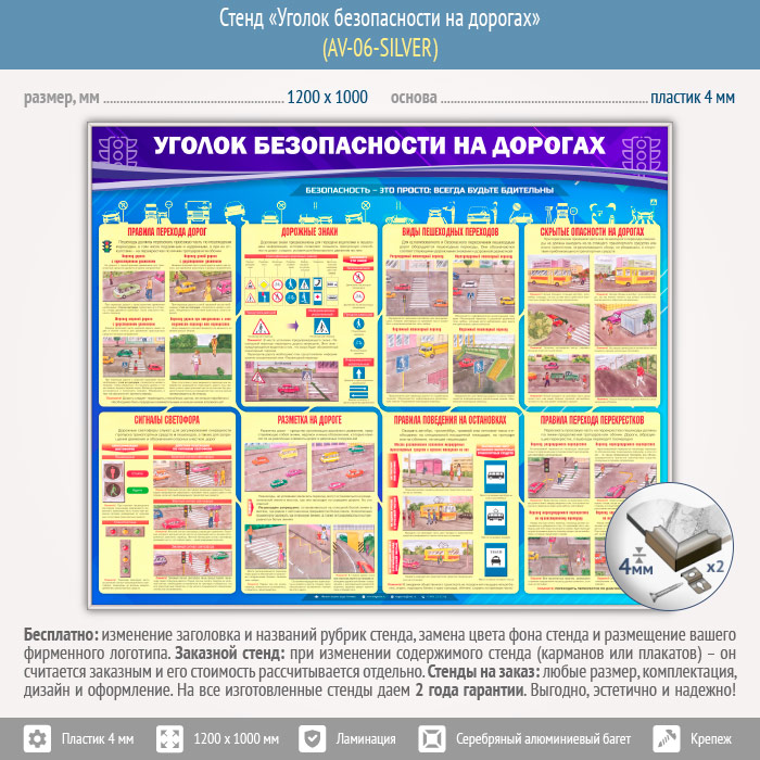 Стенд «Уголок безопасности на дорогах» (AV-06-SILVER) в Новом Уренгое купить