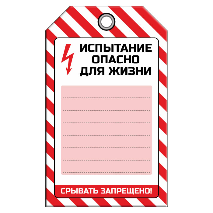 Бирка «ИСПЫТАНИЕ ОПАСНО ДЛЯ ЖИЗНИ» (1 шт., односторонняя, пластик, 70х115 мм) в Новом Уренгое купить