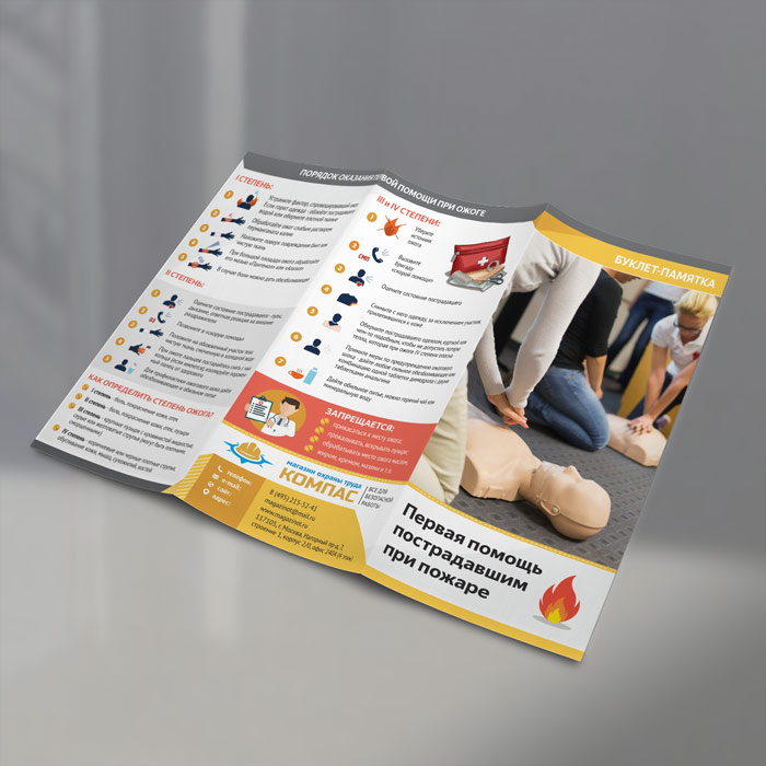 Буклет-памятка «Первая помощь пострадавшим при пожаре» (L-1) в Новом Уренгое купить