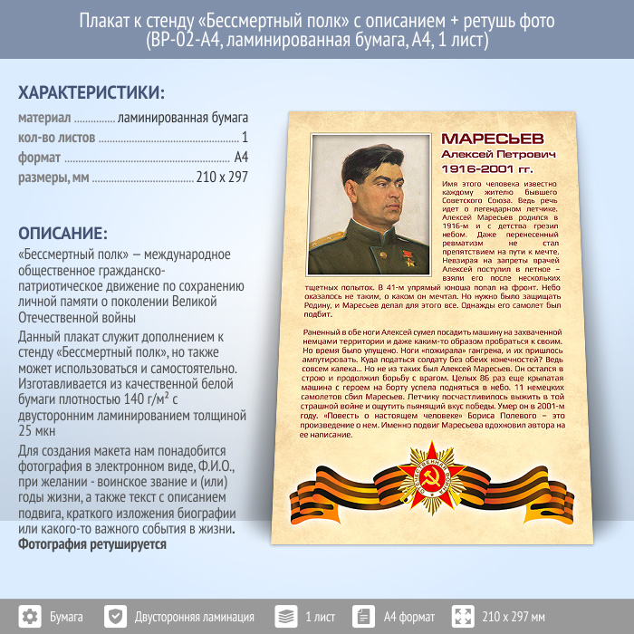 Плакат к стенду «Бессмертный полк» с описанием + ретушь фото (BP-02-A4, ламинированная бумага, А4, 1 лист) в Новом Уренгое купить