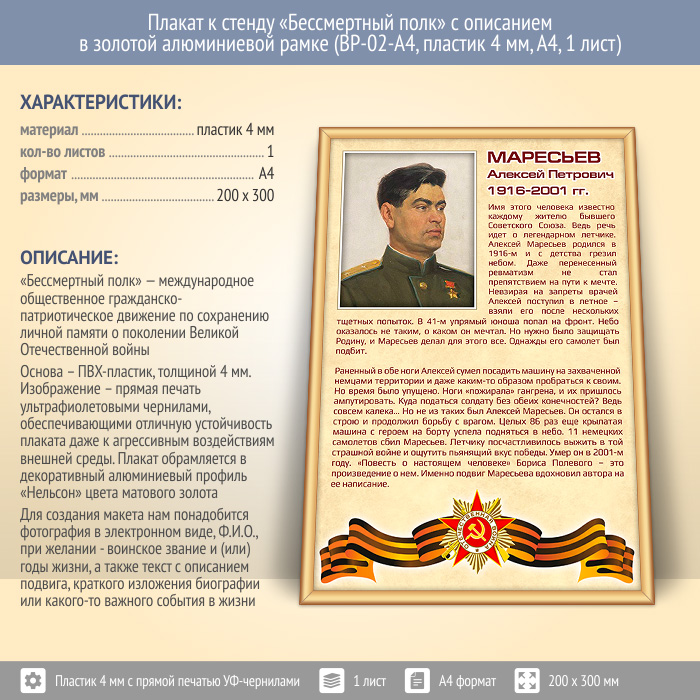 Плакат к стенду «Бессмертный полк» с описанием в золотой (матовой) алюминиевой рамке (BP-02-A4, пластик 4 мм, А4, 1 лист) в Новом Уренгое купить