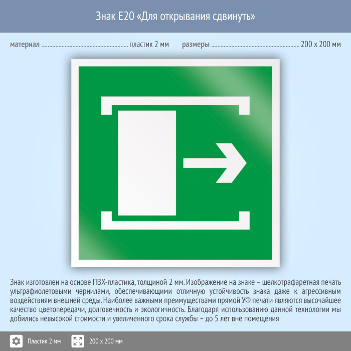 Знак E20 «Для открывания сдвинуть» (пластик, 200х200 мм) в Новом Уренгое купить