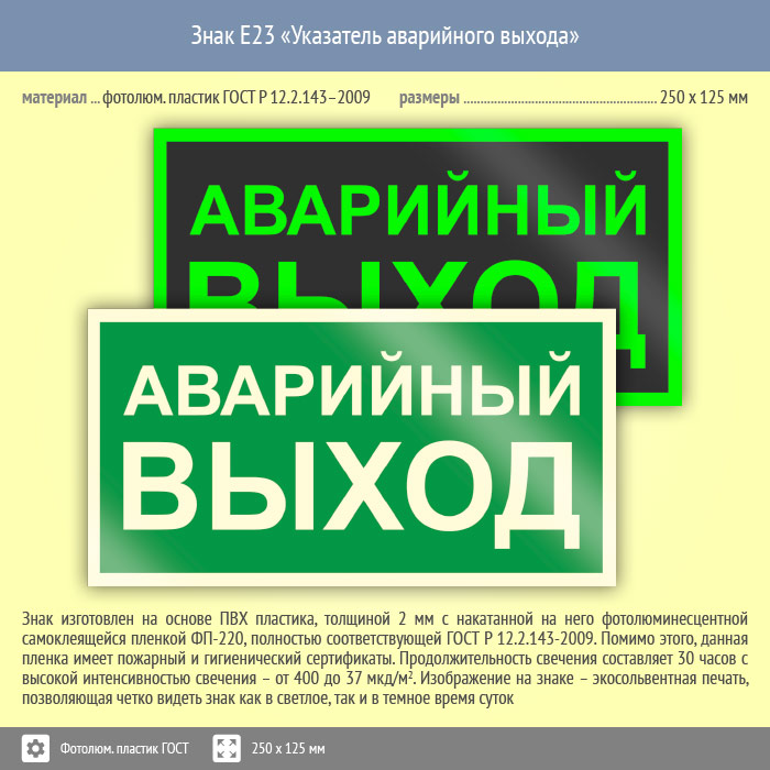 | Материал: | фотолюминесцентный пластик ГОСТ 34428-2018 | |