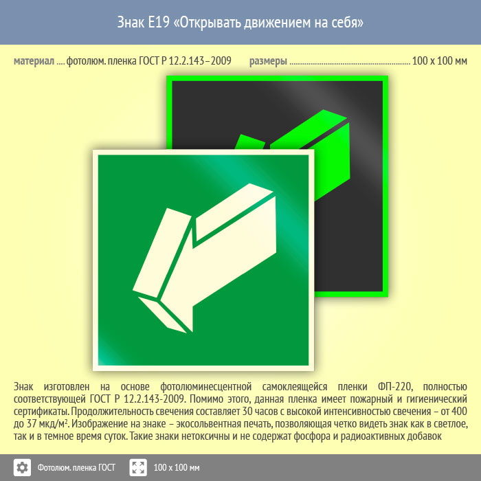 Знак E19 «Открывать движением на себя» (фотолюминесцентная пленка ГОСТ 34428-2018, 100х100 мм) в Новом Уренгое купить