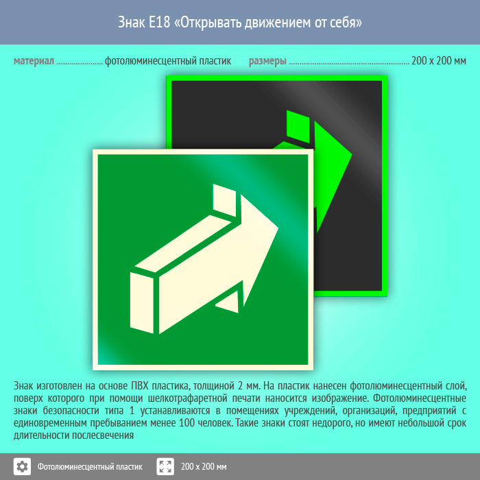 Знак E18 «Открывать движением от себя» (фотолюминесцентный пластик, 200х200 мм) в Новом Уренгое купить