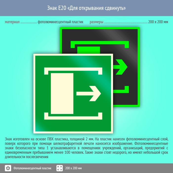 Знак E20 «Для открывания сдвинуть» (фотолюминесцентный пластик, 200х200 мм) в Новом Уренгое купить