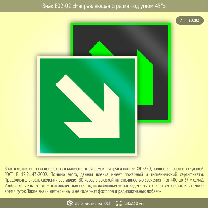 Знак E02-02 «Направляющая стрелка под углом 45°» (фотолюминесцентная пленка ГОСТ 34428-2018, 150х150 мм) в Новом Уренгое купить