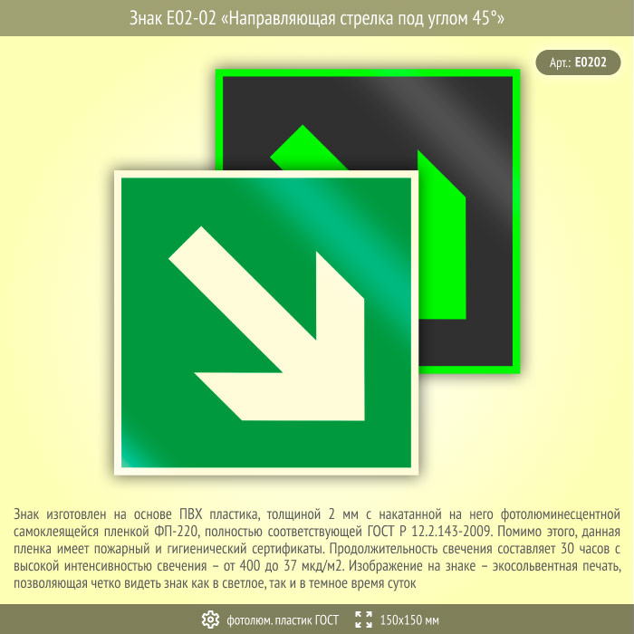 Знак E02-02 «Направляющая стрелка под углом 45°» (фотолюминесцентный пластик ГОСТ 34428-2018, 150х150 мм) в Новом Уренгое купить