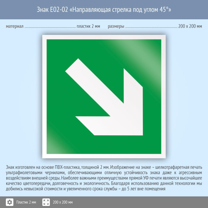 Знак E02-02 «Направляющая стрелка под углом 45°» (пластик, 200х200 мм) в Новом Уренгое купить