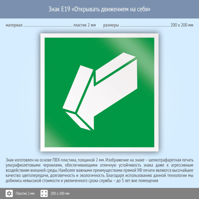 Знак E19 «Открывать движением на себя» (пластик, 200х200 мм) в Новом Уренгое купить