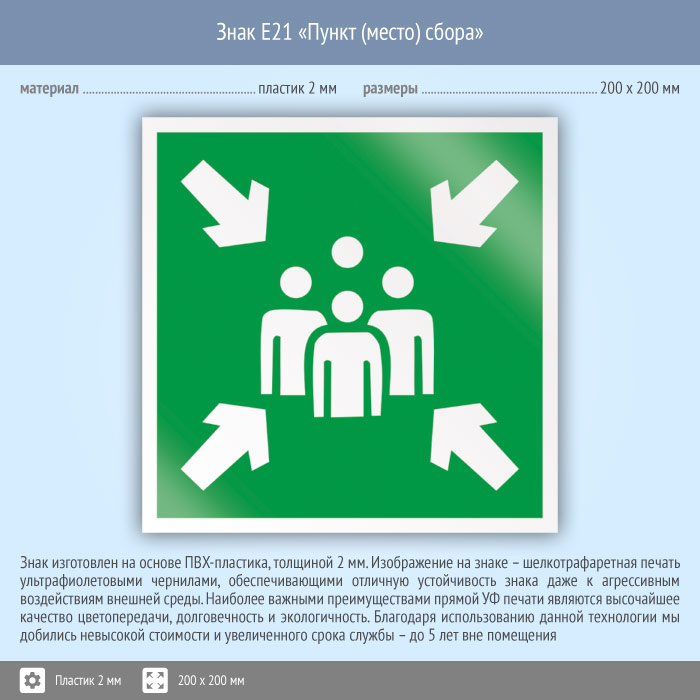 Знак E21 «Пункт (место) сбора» (пластик, 200х200 мм) в Новом Уренгое купить