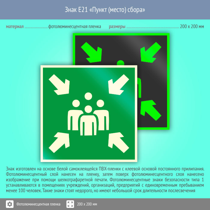 Знак E21 «Пункт (место) сбора» (фотолюминесцентная пленка, 200х200 мм) в Новом Уренгое купить