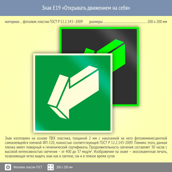 Знак E19 «Открывать движением на себя» (фотолюминесцентный пластик ГОСТ 34428-2018, 200х200 мм) в Новом Уренгое купить
