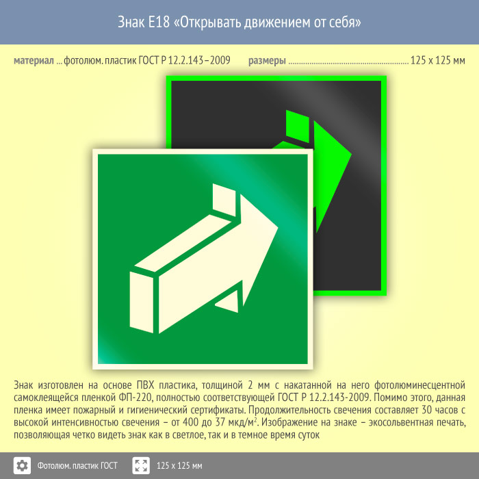 Знак E18 «Открывать движением от себя» (фотолюминесцентный пластик ГОСТ 34428-2018, 125х125 мм) в Новом Уренгое купить