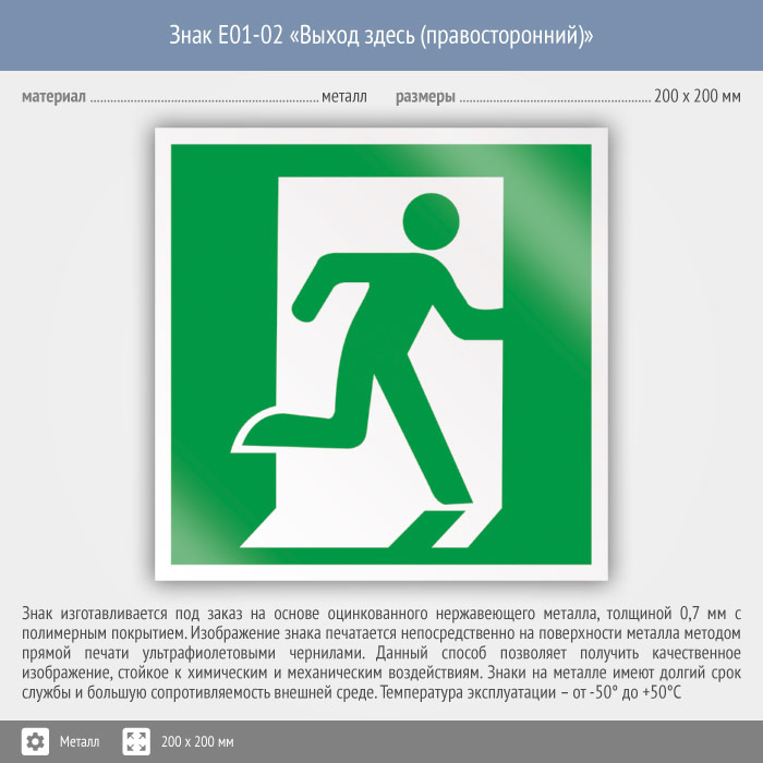 Знак E01-02 «Выход здесь (правосторонний)» (металл, 200х200 мм) в Новом Уренгое купить