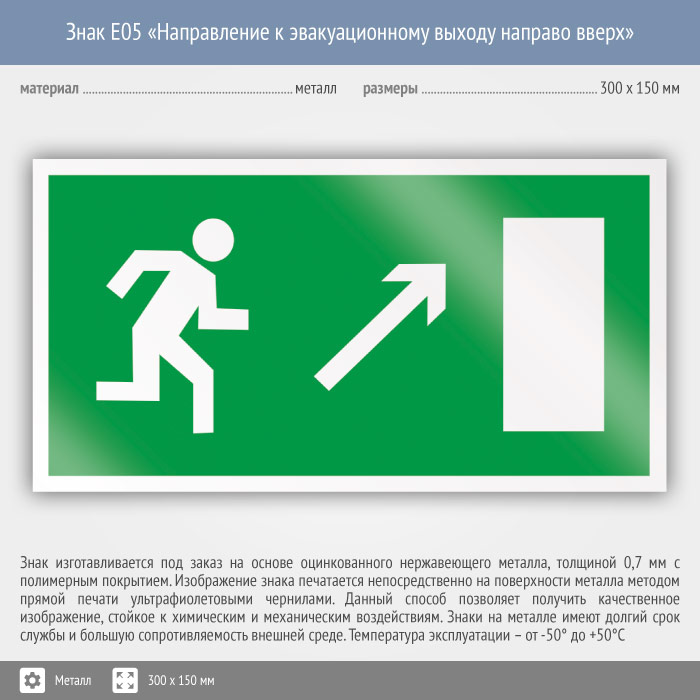 Знак E05 «Направление к эвакуационному выходу направо вверх» (металл, 300х150 мм) в Новом Уренгое купить