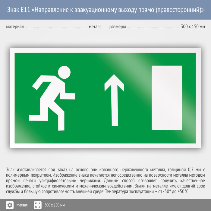 Знак E11 «Направление к эвакуационному выходу прямо (правосторонний)» (металл, 300х150 мм) в Новом Уренгое купить