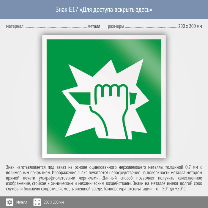 Знак E17 «Для доступа вскрыть здесь» (металл, 200х200 мм) в Новом Уренгое купить
