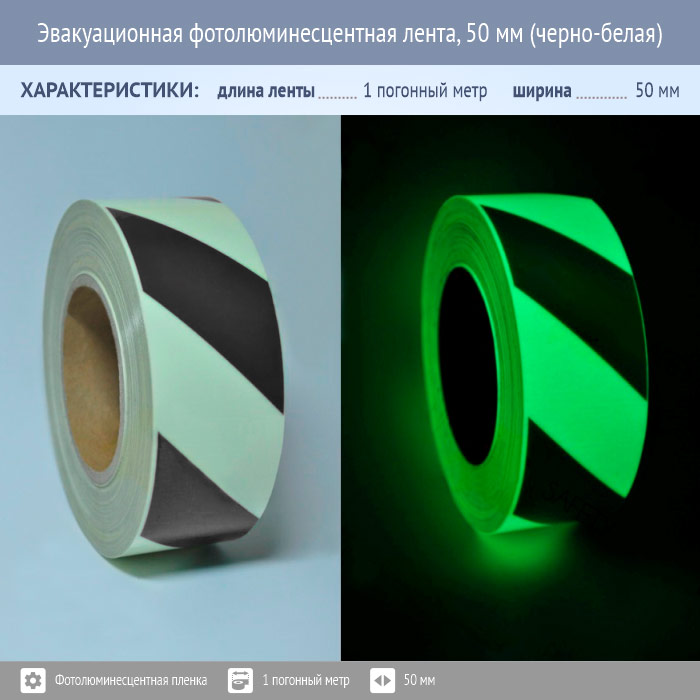 Эвакуационная фотолюминесцентная лента, 50 мм (черно-белая) в Новом Уренгое купить