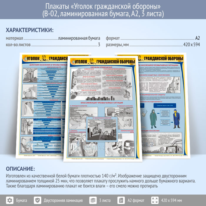 Плакаты «Уголок гражданской обороны» (В-02, ламинированная бумага, А2, 3 листа) в Новом Уренгое купить