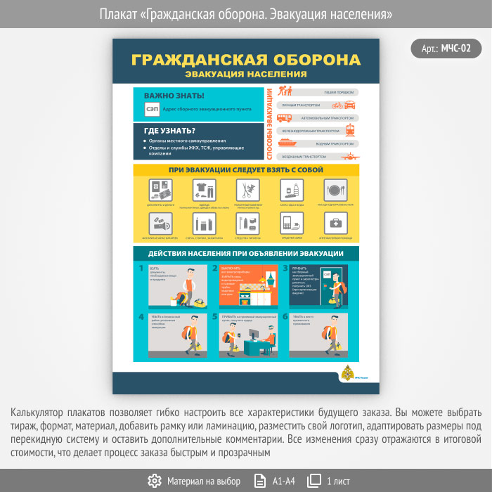 Плакат «Гражданская оборона. Эвакуация населения» (МЧС-02, 1 лист) в Новом Уренгое купить