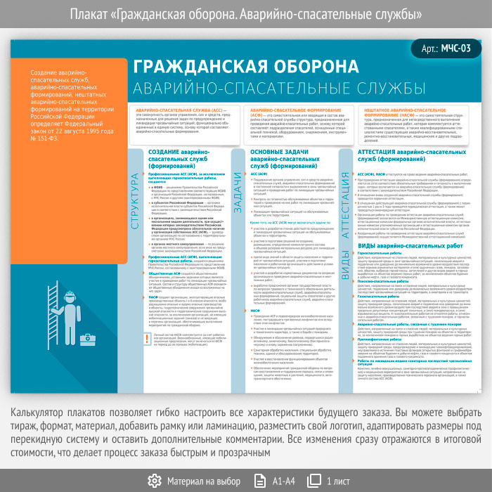 Плакат «Гражданская оборона. Аварийно-спасательные службы» (МЧС-03, 1 лист) в Новом Уренгое купить