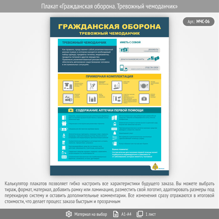 Плакат «Гражданская оборона. Тревожный чемоданчик» (МЧС-06, 1 лист) в Новом Уренгое купить
